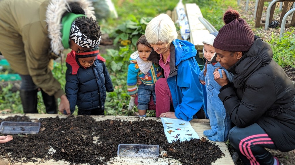 Throughout this time at Max Roach, we have also been working with the Healthy Living Platform to host activities in the garden as part of their weekly ‘Lunch Grow Play’ session for parents and children under the age of 4. Funded by LEAP, the Lambeth Early Action Partnership, the programme encourages young families to spent time outdoors, playing in the garden and getting involved in growing fresh fruit and vegetables.