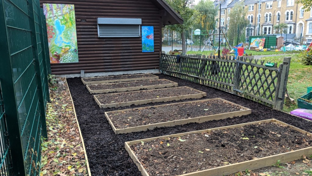 Since 2018, we have been working alongside the Healthy Living Platform to redevelop the grounds of Max Roach Adventure Playground, part of the Loughborough Community Centre in Brixton. The intention is to create lots of space that can be used to grow healthy, organic food that can then be used by HLP’s Food Ambassadors, who create free healthy meals for parents and children attending their activities at the site.