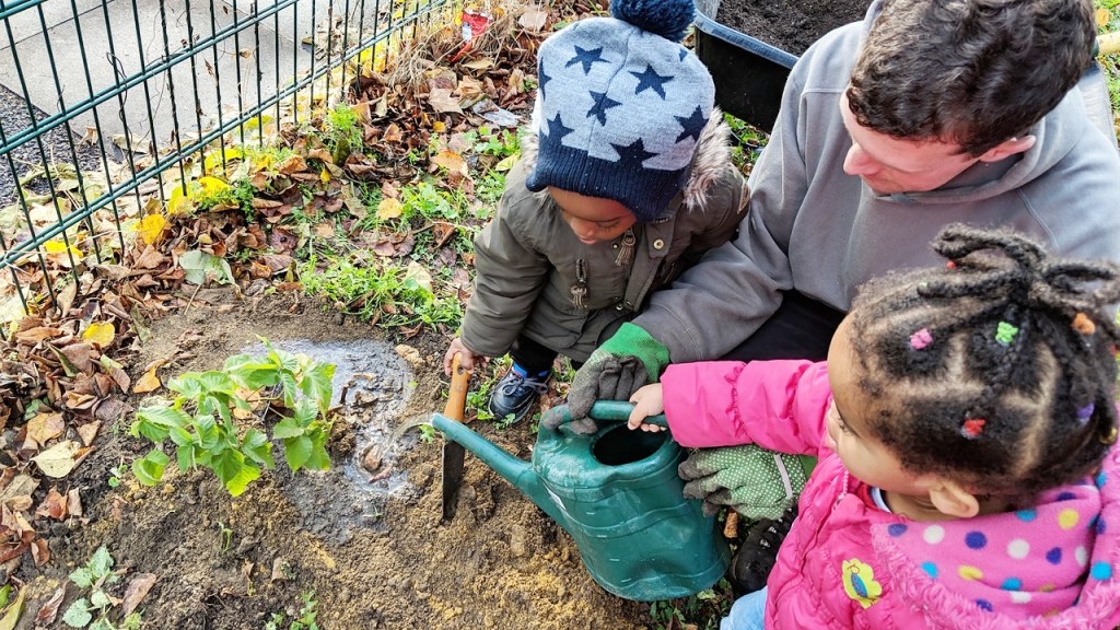 Next up was a new mini-orchard, which we planted on the nursery side of Loughborough Community Centre, in the grounds where the children attending Rosebuds Nursery can play amongst the trees. We hosted a special Saturday planting event, and were joined by lots of the centres regular families to plant the new fruit trees.