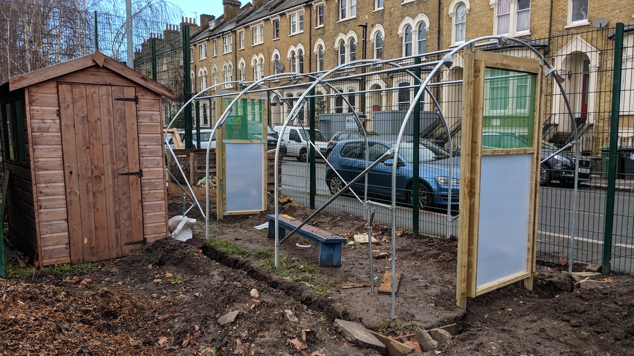 Later in 2019, we secured funding from the Mayor of London’s Greener City Small Grants Fund to develop the area around the back of the polytunnel, to create another new raised bed, a table for use for outdoor potting activities, two more compost bays, a storage space for horse manure to rot down, and a cold frame! This work is still taking place and due to be completed in time for the 2020 growing season to get under way.